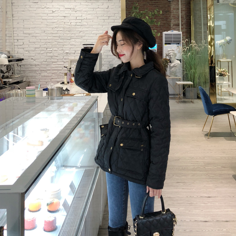 韓版時尚復古外套女冬季2018新款百搭顯高收腰夾克加厚棉衣女上衣