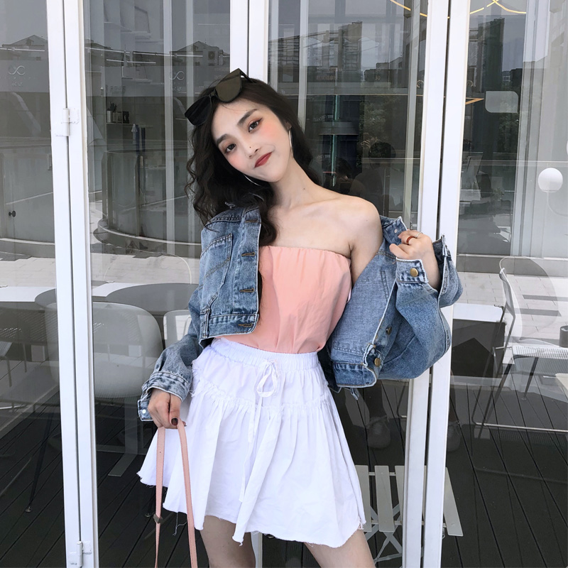 慵懶風秋裝女2018新款復古夾克牛仔外套女春秋+純色V領吊帶連衣裙