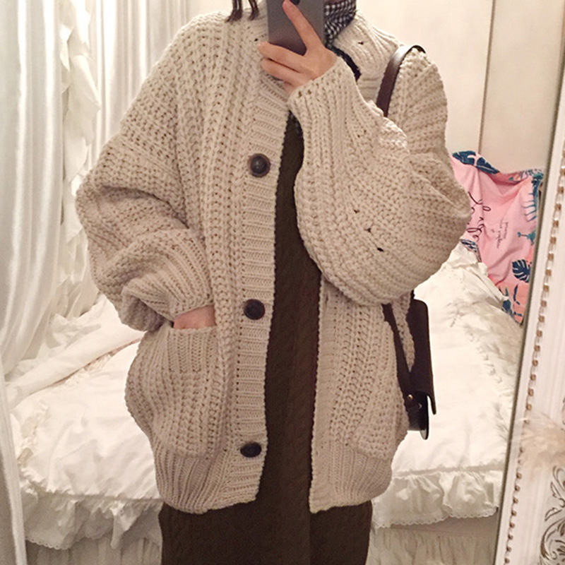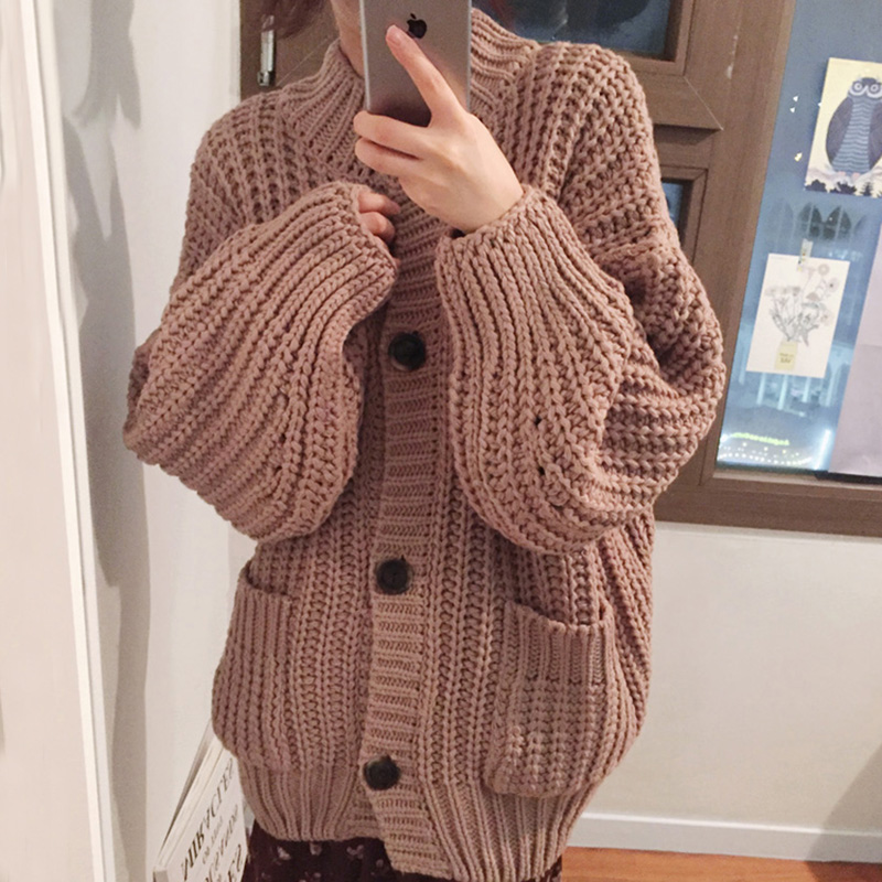 保暖長袖毛衣外套秋裝女2018新款單排扣針織開衫學生休閑寬松上衣