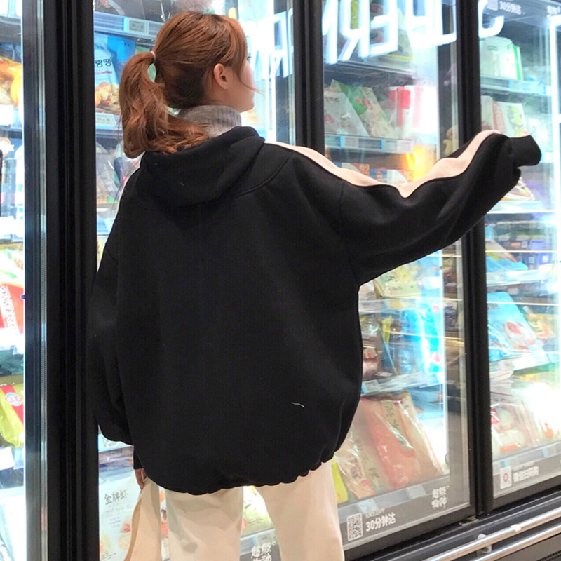 / 慵懶風寬松假兩件衛衣2018新款女秋冬裝高領拼色加絨外套長袖上衣