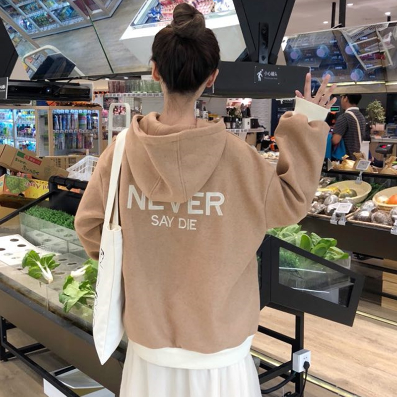 韓版寬松字母連帽衛衣2018新款女秋冬裝拼色毛呢外套怪味長袖上衣