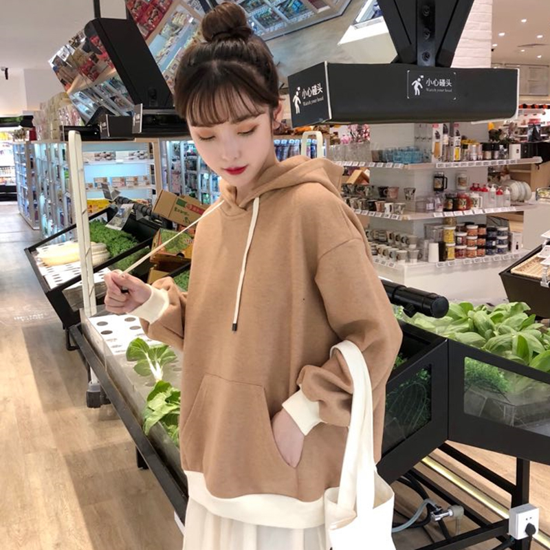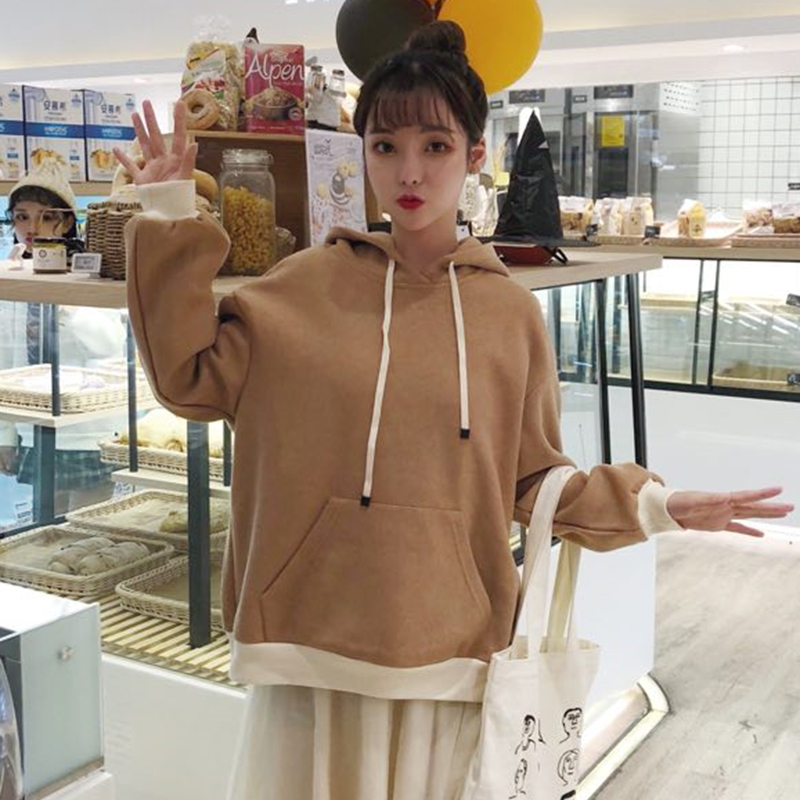 / 韓版寬松字母連帽衛衣2018新款女秋冬裝拼色毛呢外套怪味長袖上衣