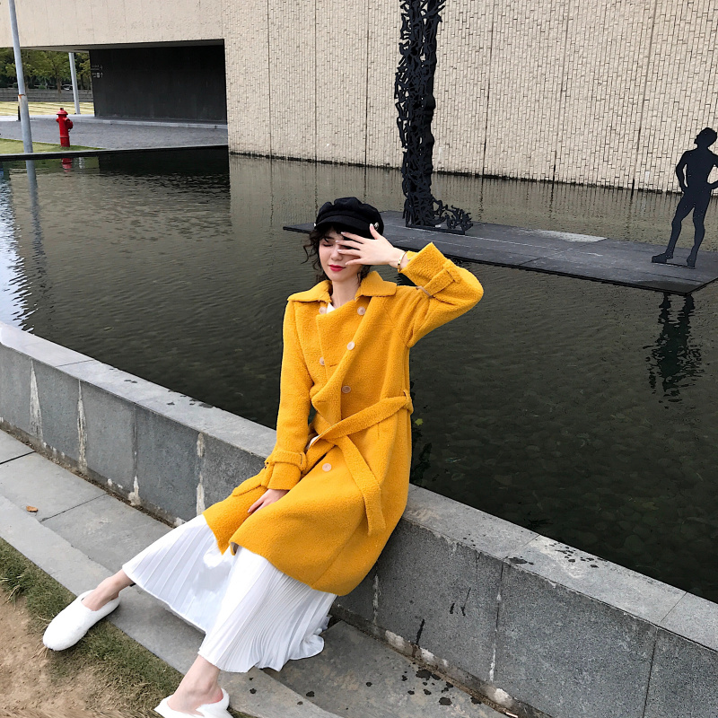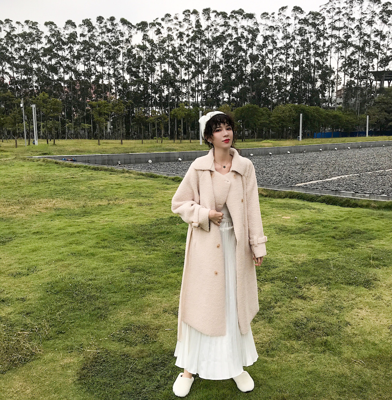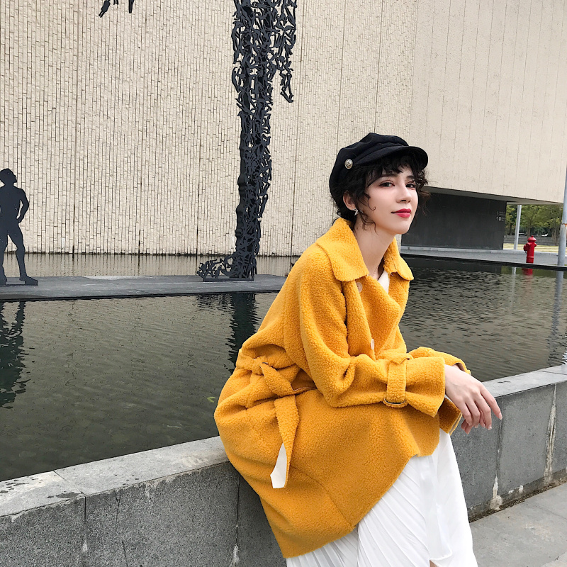 / 韓版chic羊羔毛外套女秋裝2018新款皮毛一體寬松慵懶polo領長外套