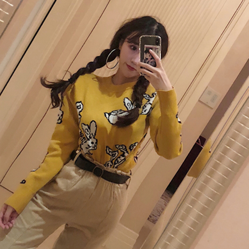 洋氣套裝女秋冬新款寬松卡通套頭針織衫毛衣外套寬松高腰休閑褲子