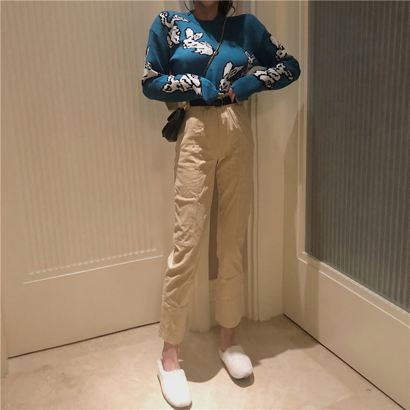 黃色毛衣|藍色毛衣|杏色褲子【送腰帶】