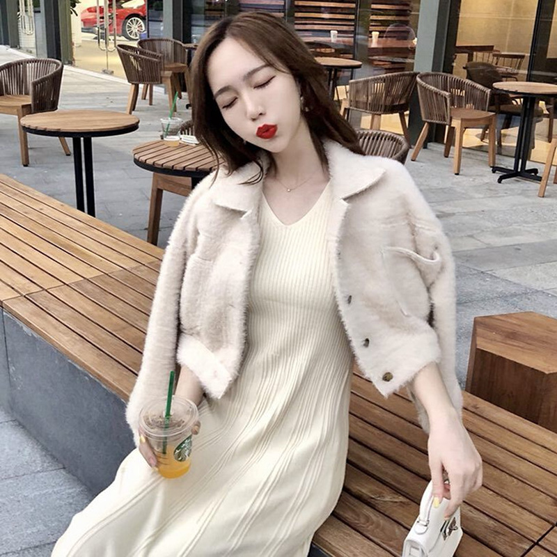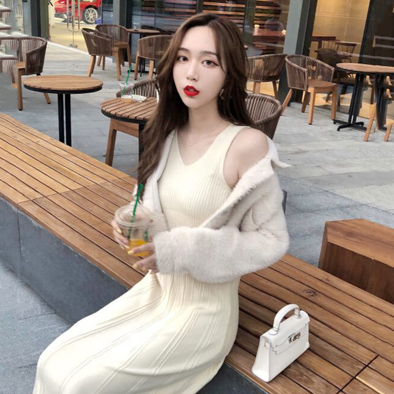 / 毛衣加裙子兩件套秋裝2018新款寬松短款毛絨外套休閑背心針織長裙