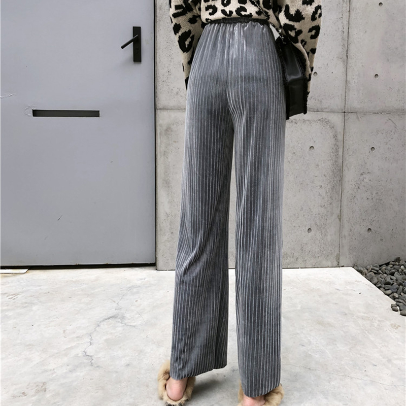 chic港風長褲子女冬裝2018新款韓版高腰顯瘦闊腿褲時尚氣質休閑褲