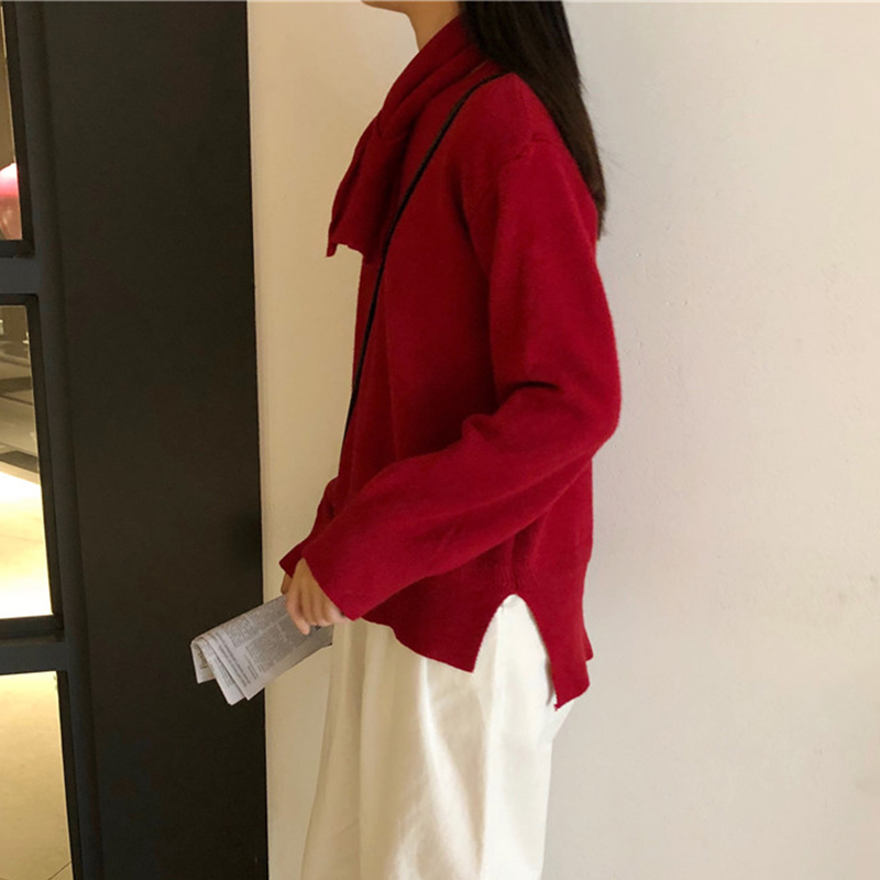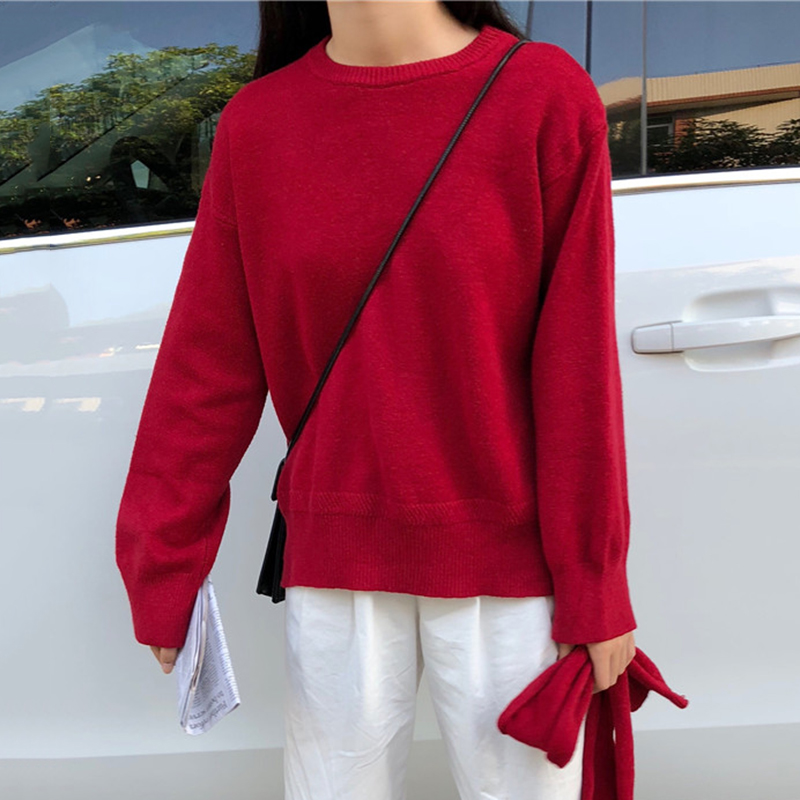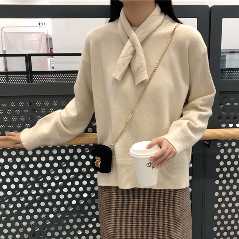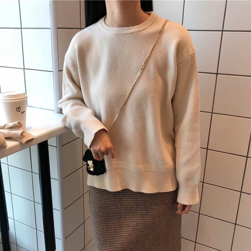 chic風純色毛衣女秋冬裝2018新款韓版百搭寬松長袖針織衫學生外套