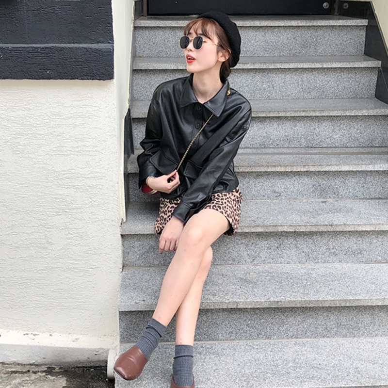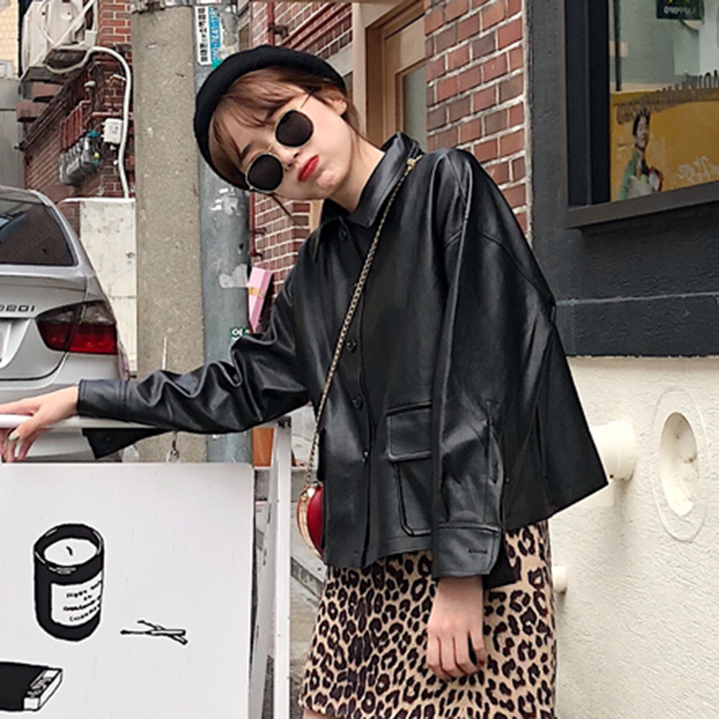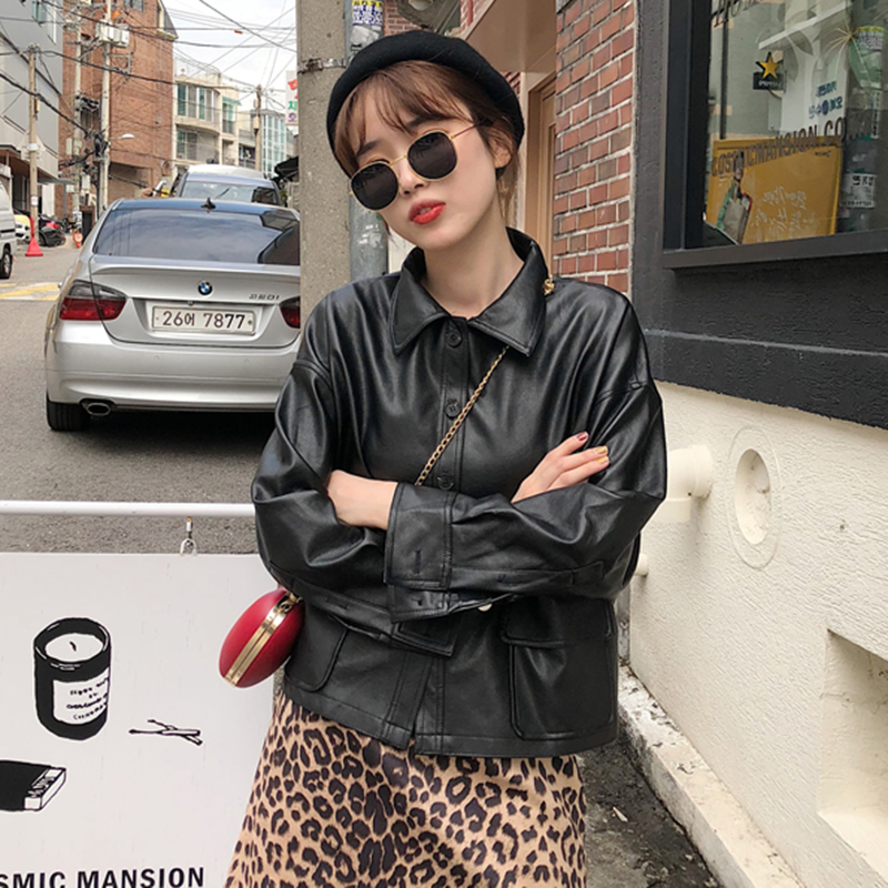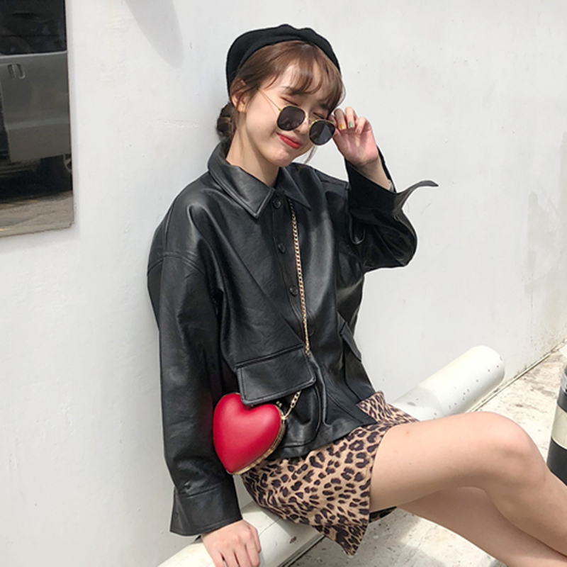 秋裝女2018新款韓版時尚pu皮外套帥氣個性黑色機車服長袖寬松上衣