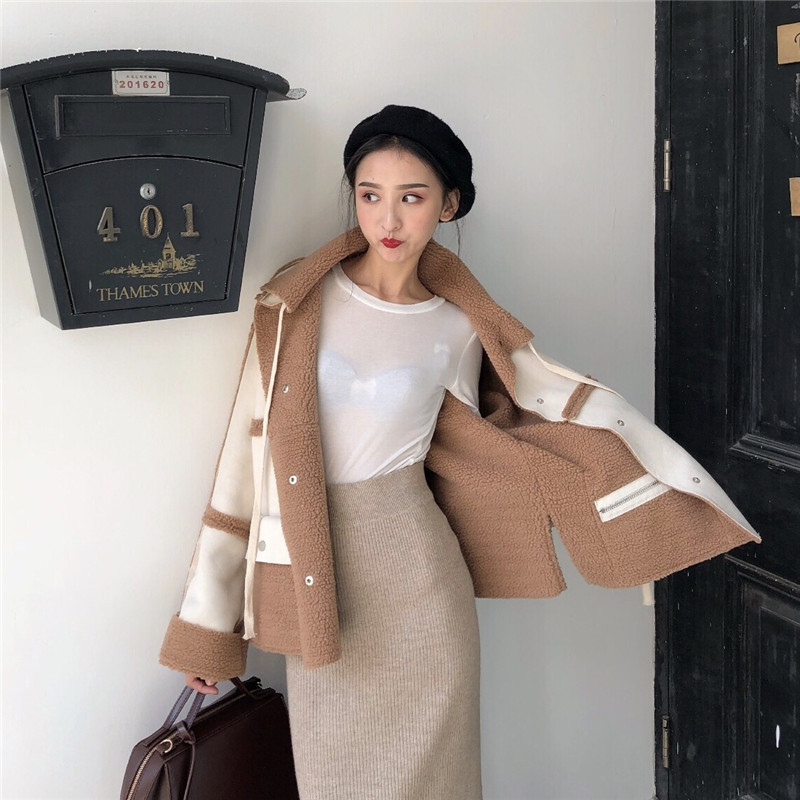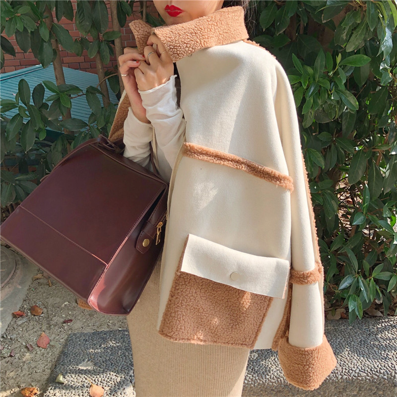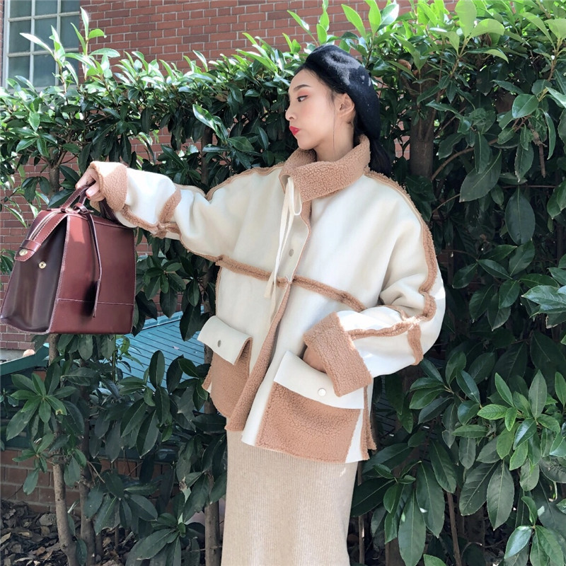 / 韓版外套女秋裝2018新款加厚羊羔毛兩面穿寬松百搭翻領系帶外套潮