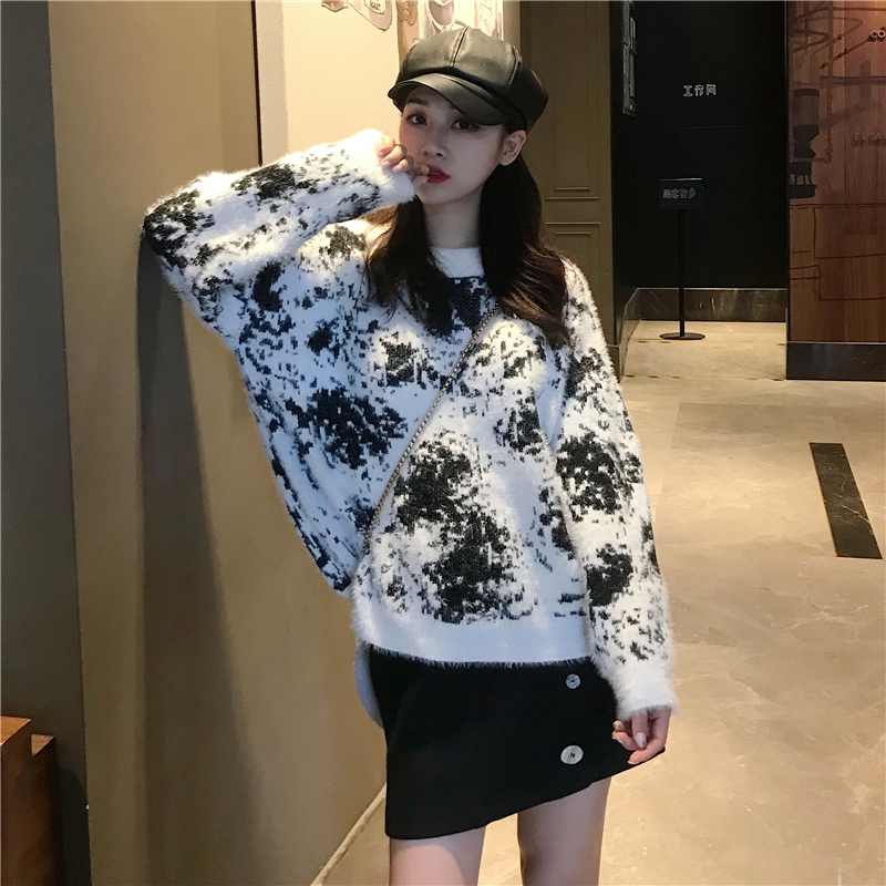 / 慵懶風寬松撞色毛絨絨外套女秋冬裝2018新款韓版網紅套頭針織毛衣
