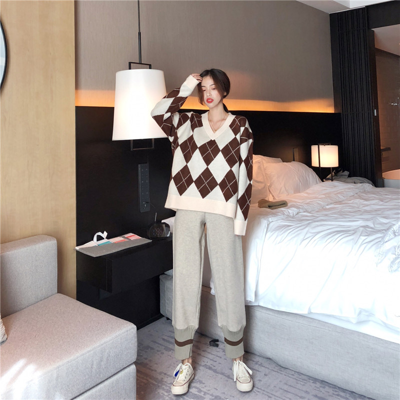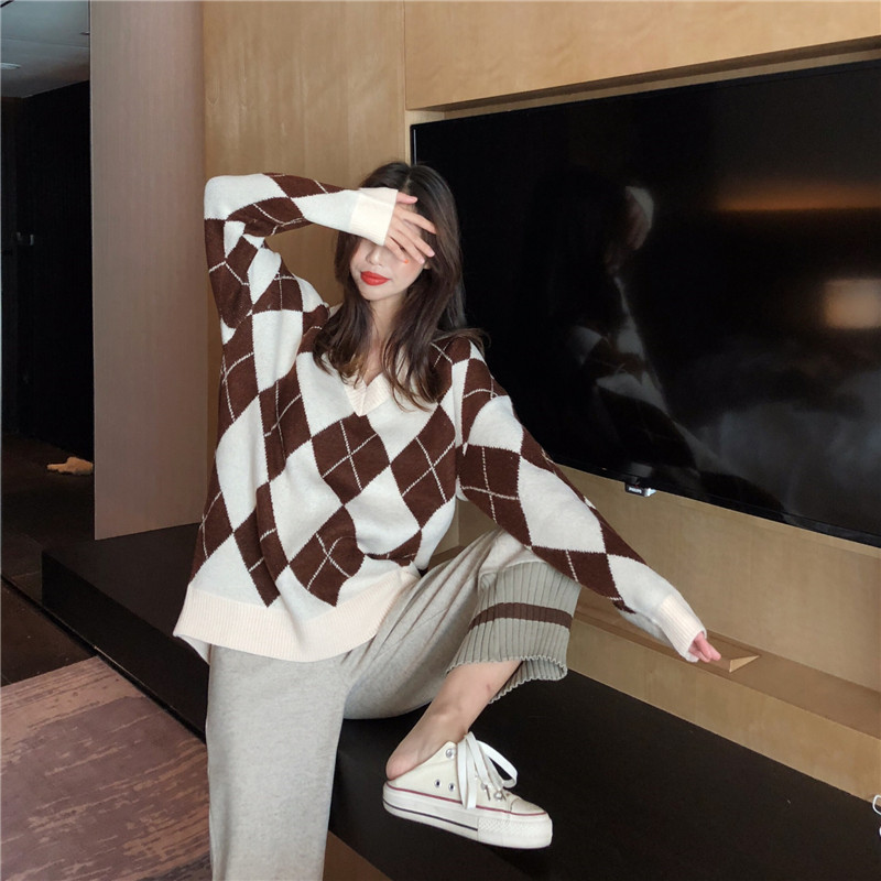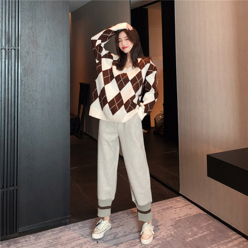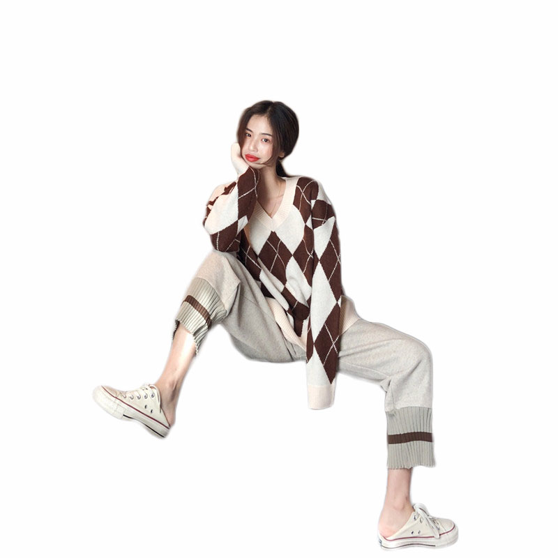 寬松復古花朵慵懶風高領毛衣女秋冬2018新款+百搭高腰針織半身裙