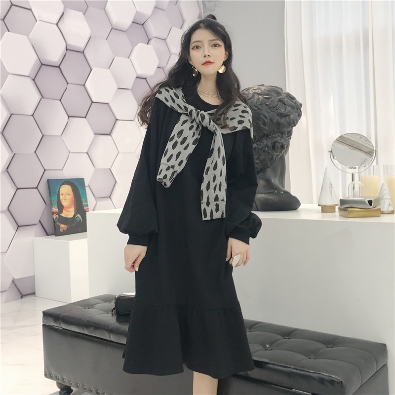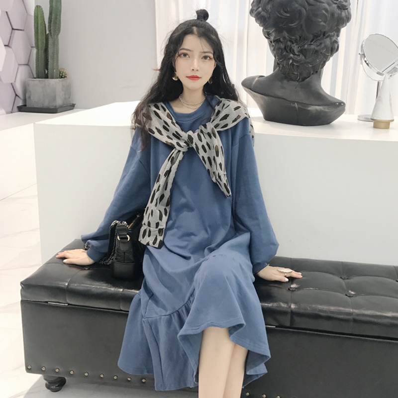 秋裝女2018新款韓版拼接假兩件荷葉邊連衣裙時尚燈籠長袖中長裙子