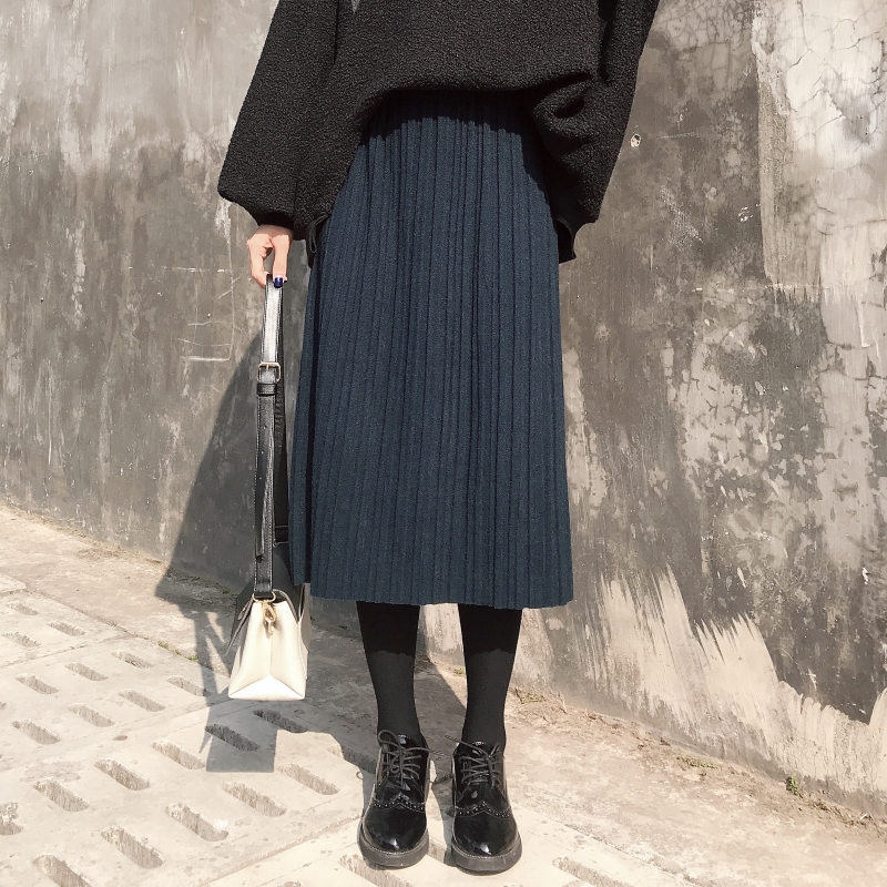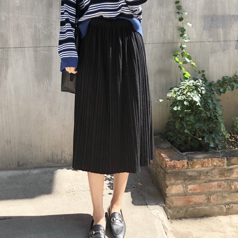 韓版時尚秋季半身長裙套裝新款女裝復古百搭加厚舒適A字半身裙潮