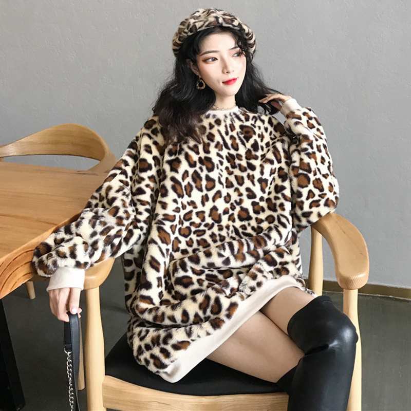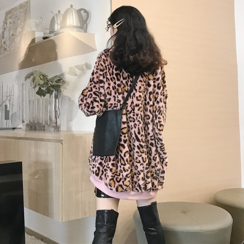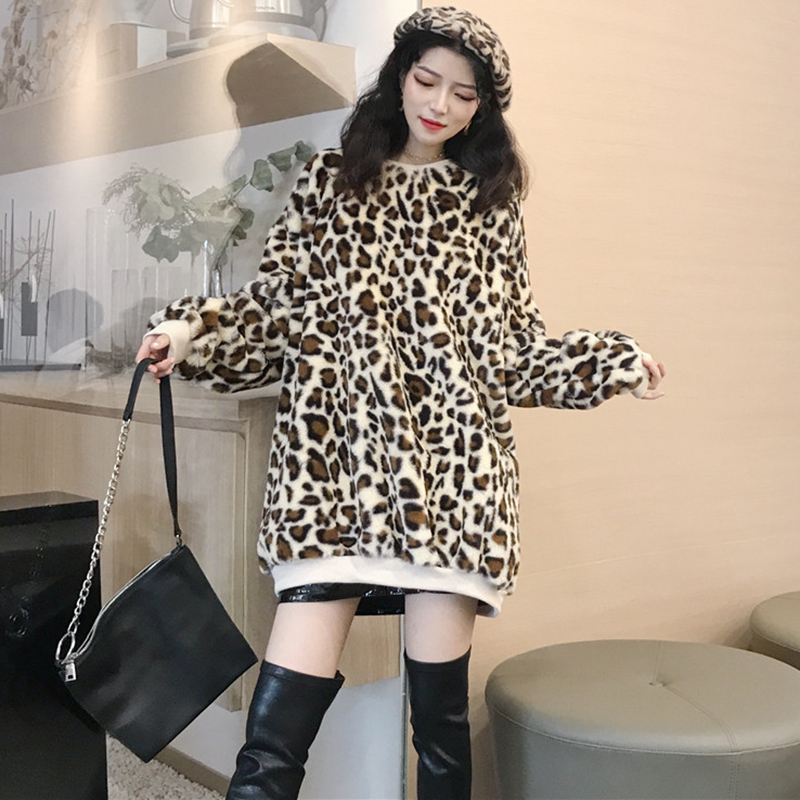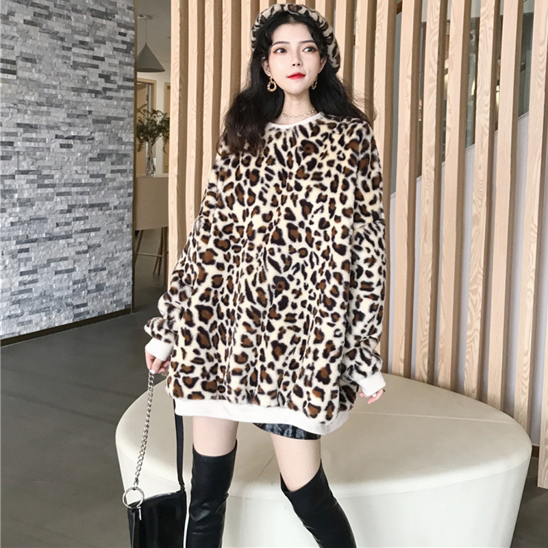 / 韓版圓領毛絨衛衣2018新款女秋冬裝寬松豹紋外套時尚怪味長袖上衣