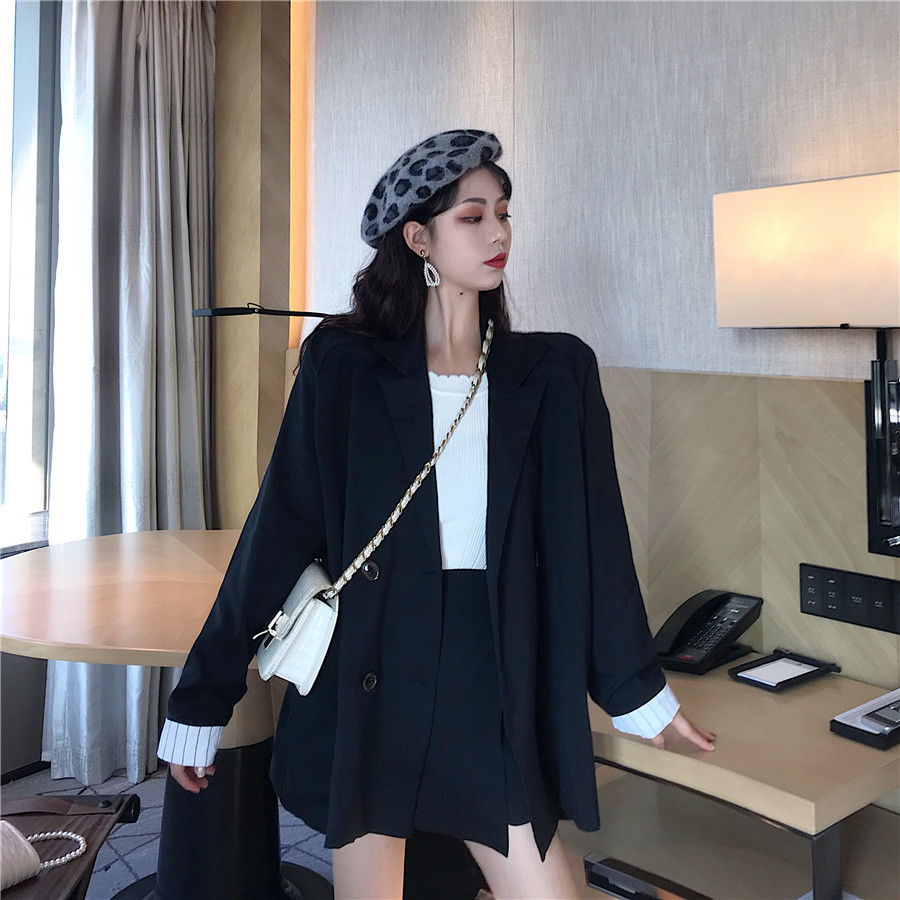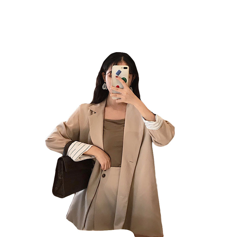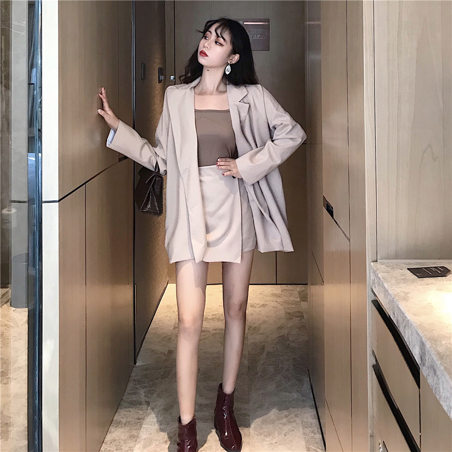網紅時尚秋裝女2018新款套裝韓版小西裝+寬松chic氣質短裙兩件套