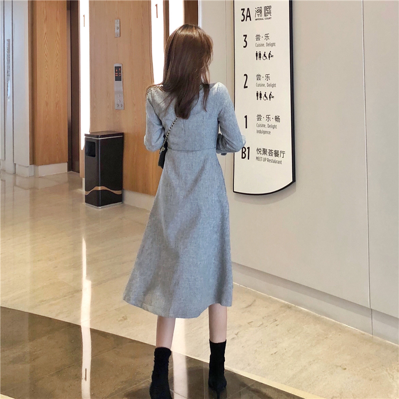 慵懶風秋裝女2018新款復古夾克牛仔外套女春秋+純色V領吊帶連衣裙