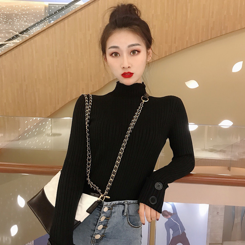 港味修身顯瘦打底針織衫女秋冬裝新款黑色長袖T恤學生時尚上衣潮