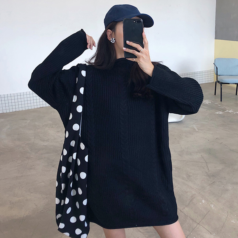 / 寬松中長款毛衣女秋冬裝2018新款麻花黑色針織外套學生慵懶風上衣