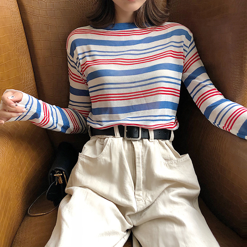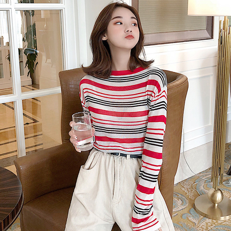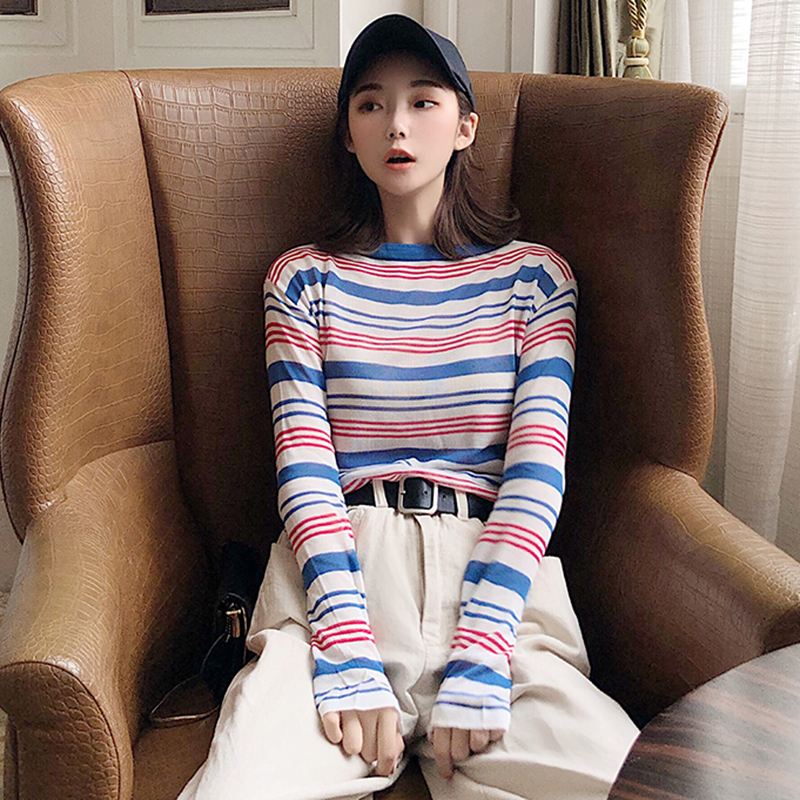 秋冬女裝2018新款韓版時尚寬松條紋打底衫學生休閑長袖T恤上衣潮