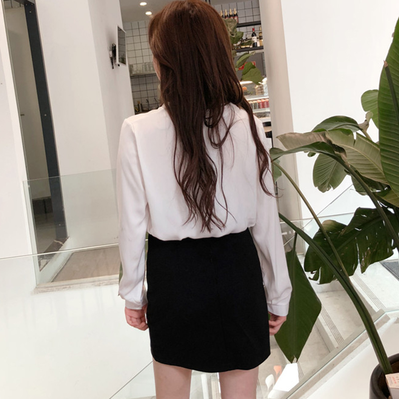 / 拼色V領雪紡白襯衫早秋女2018新款韓版簡約氣質修身防曬長袖上衣
