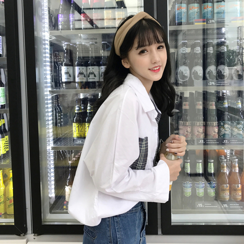 / 女2018新款秋裝韓版寬松個性拼接格子襯衫學生港風中長上衣外套潮
