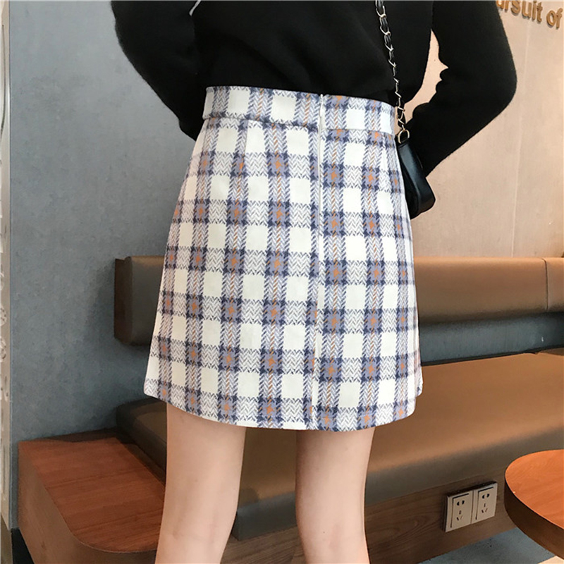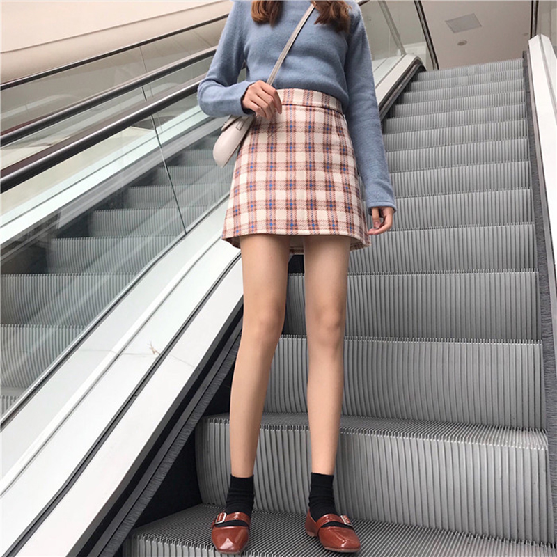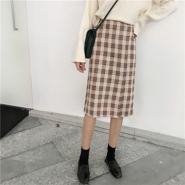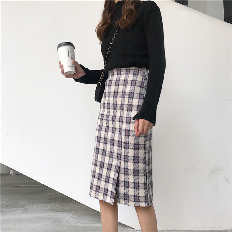 格子chic包臀開叉半身裙女秋冬裝2018新款氣質高腰A字中長半身裙