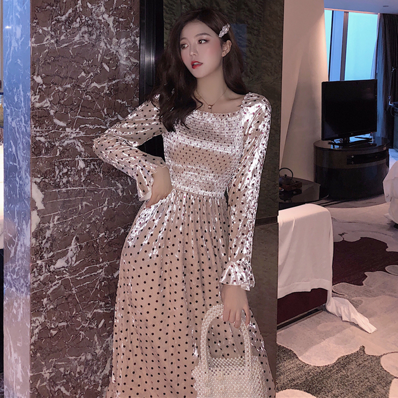 / 女神套裝秋冬2018新款寬松毛絨背心馬甲時尚波點長款絲絨連衣裙子