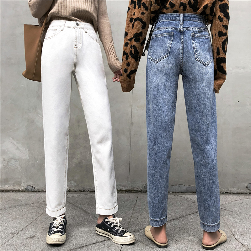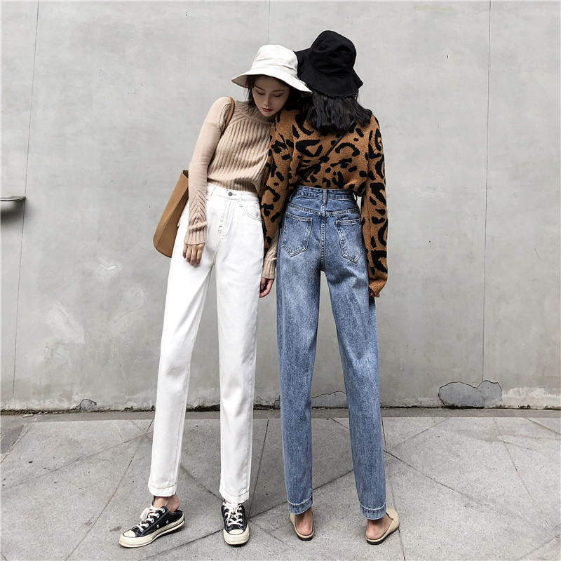 / 韓版港味復古chic褲子時尚網紅同款社會牛仔褲女寬松高腰哈倫褲女