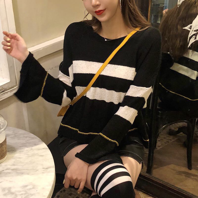 / 套裝女秋冬2018新款復古條紋打底襯衫高腰pu皮褲子學生時尚過膝襪