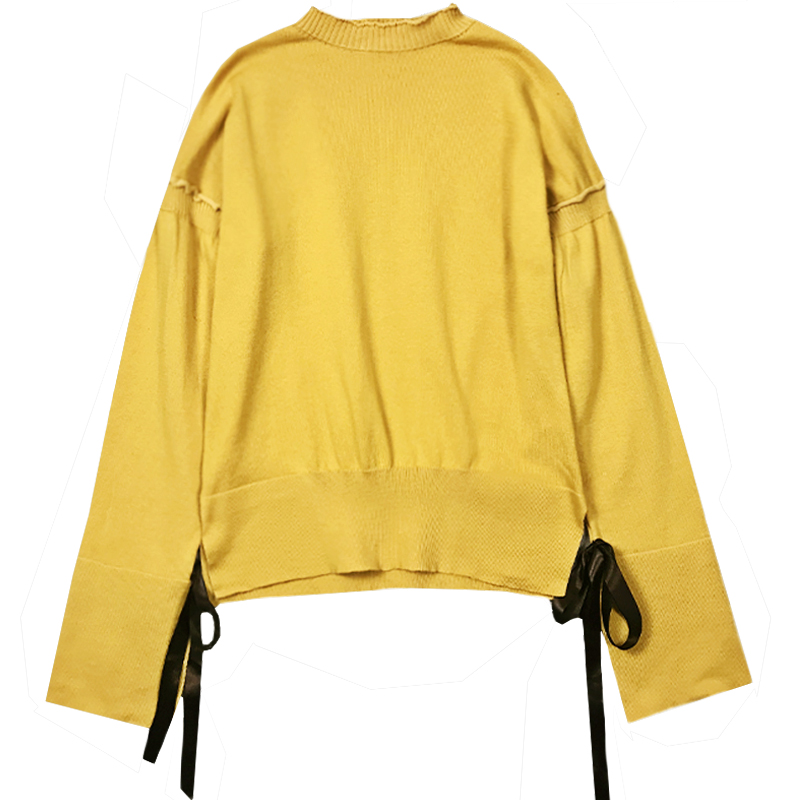 慵懶風毛衣秋裝女2018新款小清新系帶荷葉長袖針織衫寬松圓領上衣