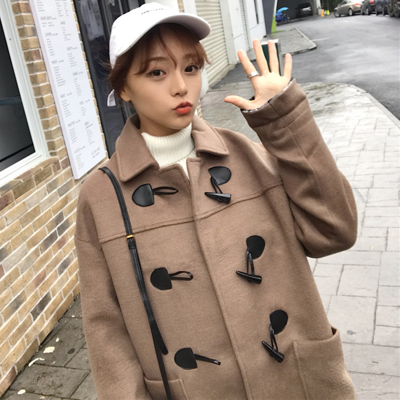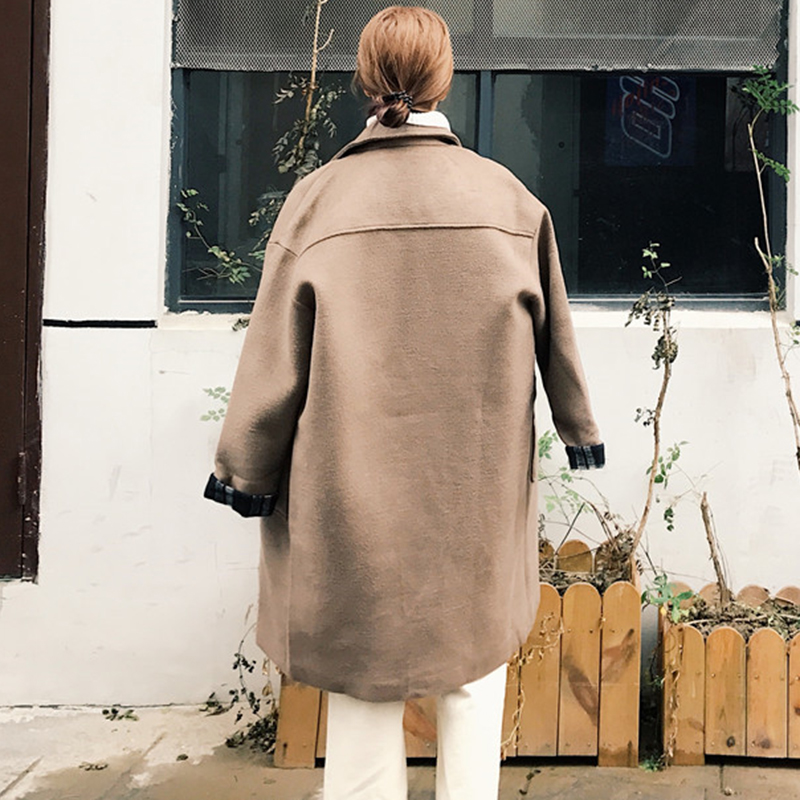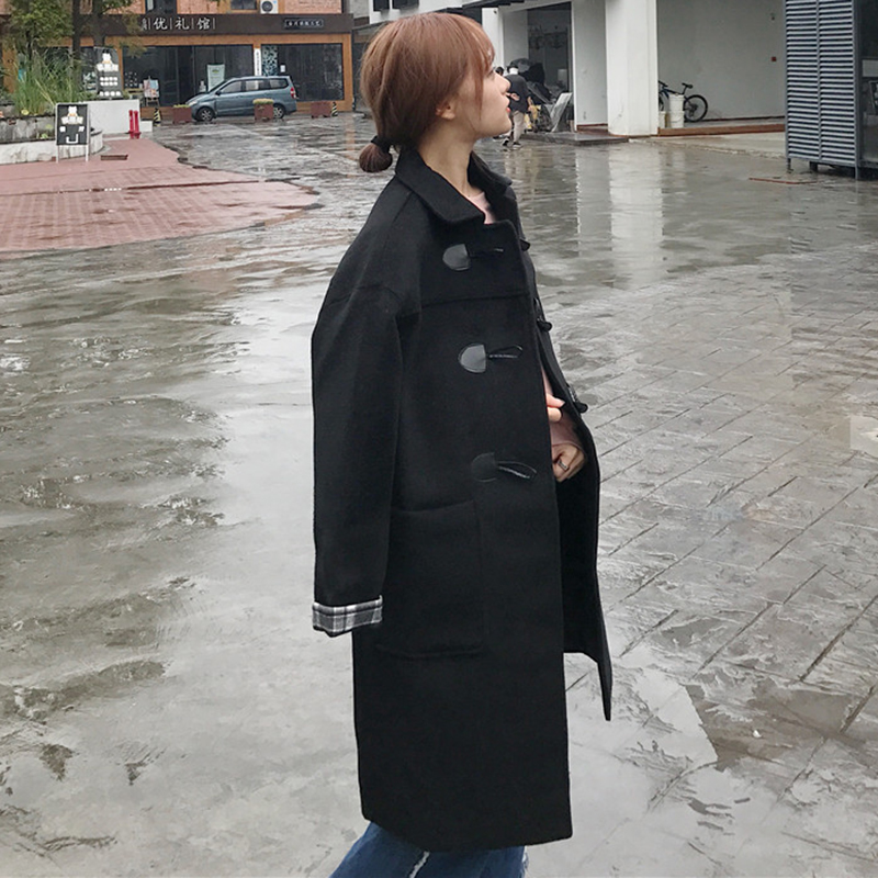 / 女裝秋冬2018新款復古中長款夾棉呢子大衣學生休閑寬松黑色外套潮
