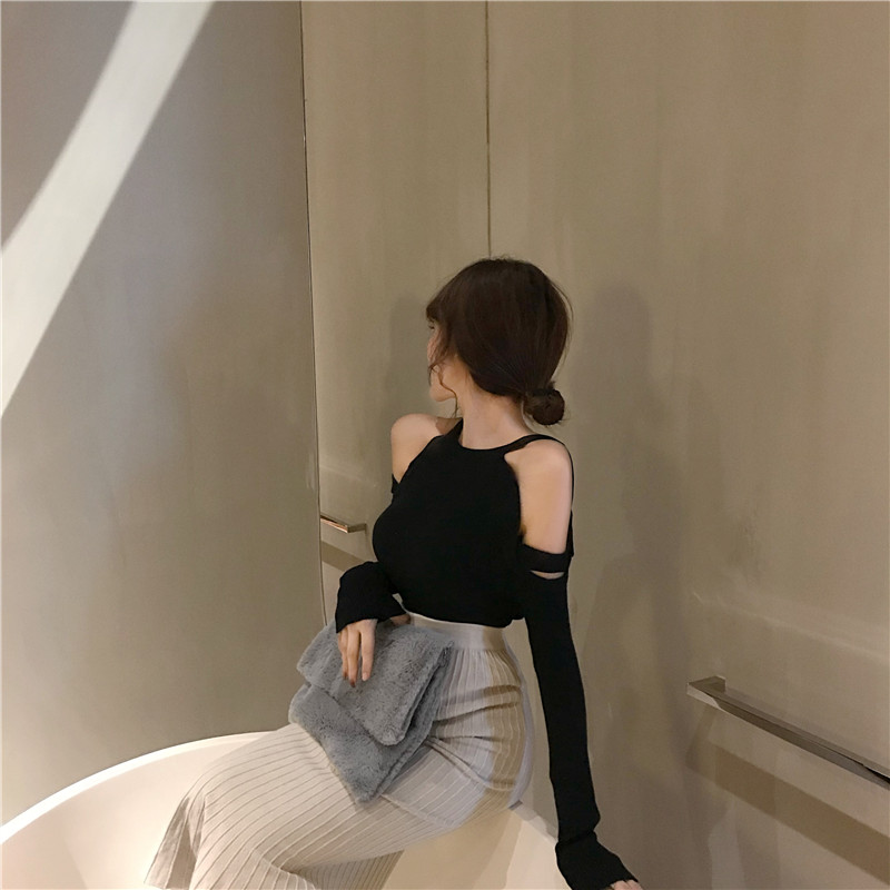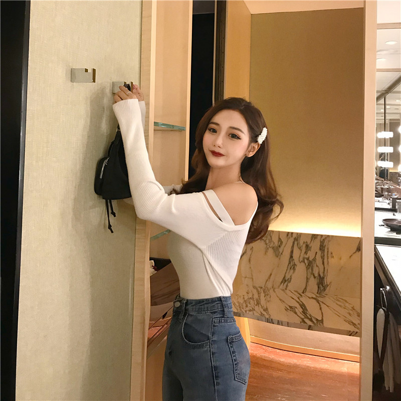 chic早秋毛衣慵懶2018新款女時尚韓版修身顯瘦百搭露肩打底針織衫