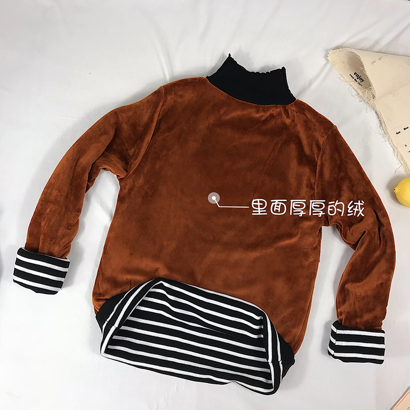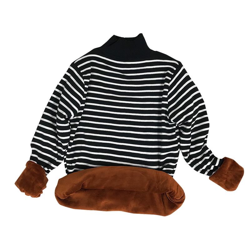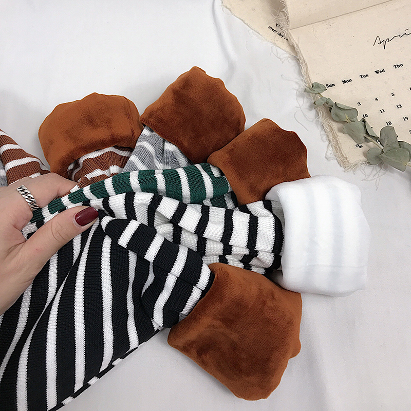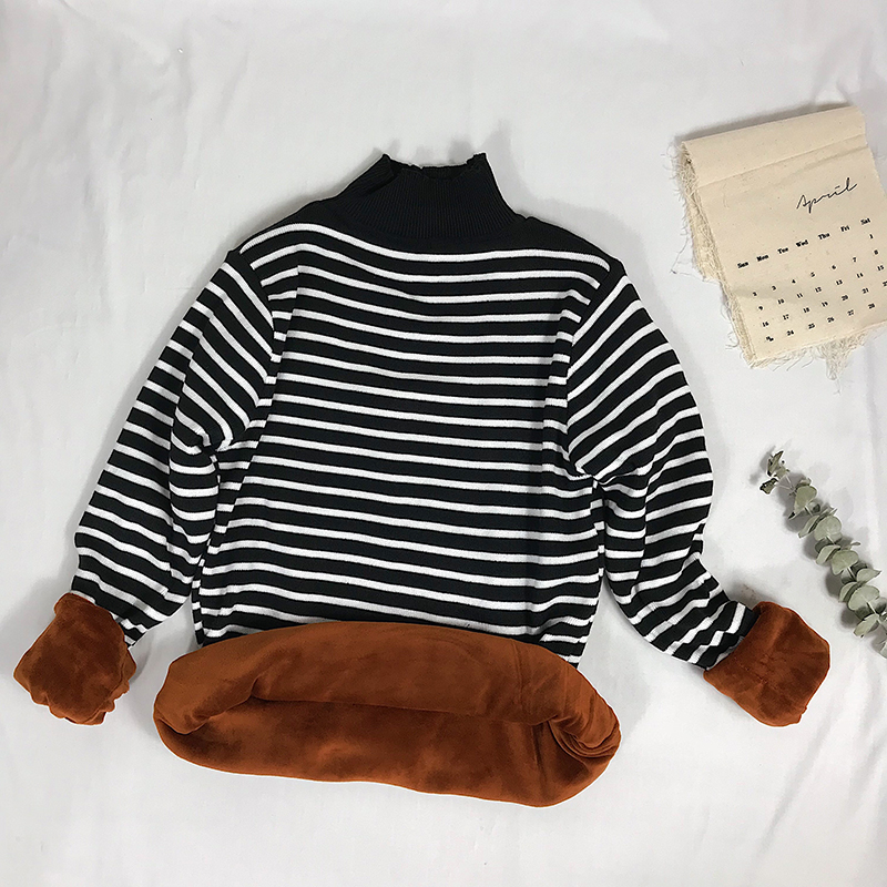 半高領條紋針織衫女秋冬裝2018新款韓版修身加絨保暖打底衫上衣潮