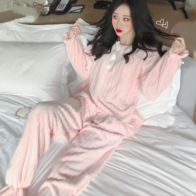 2018新款韓版甜美可愛學院風秋冬加絨加厚舒適睡衣睡褲家居服套裝