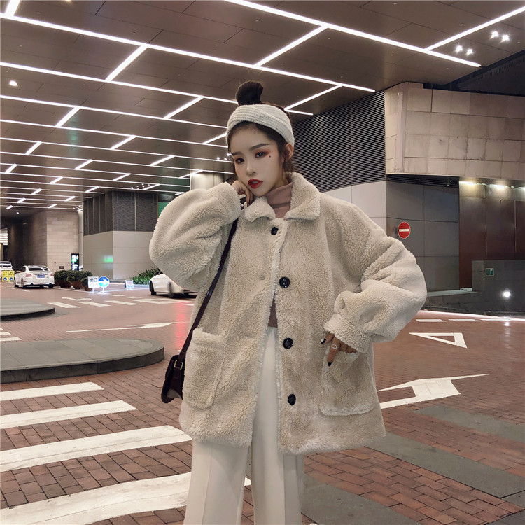 復古溫柔網紅百搭慵懶立領加厚羊羔毛外套女冬裝2018新款棉衣棉服