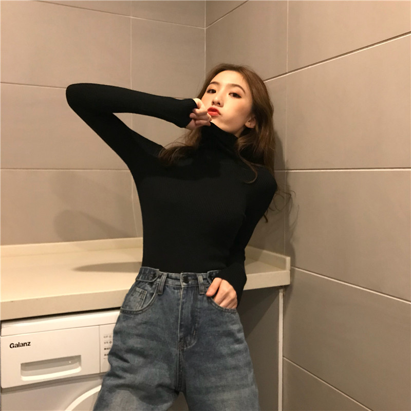韓版時尚慵懶風毛衣女套頭新款百搭彈力柔軟高領復古長袖針織衫女