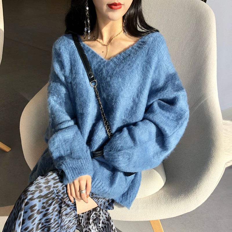 / 御姐套裝女秋冬新款V領寬松慵懶風毛衣針織外套豹紋吊帶連衣裙子