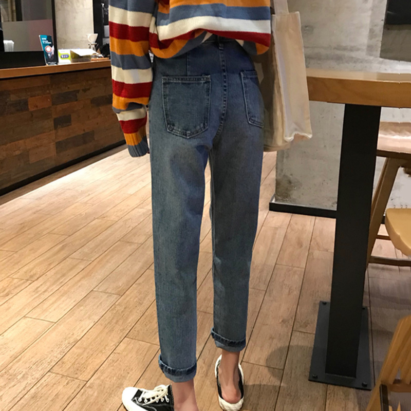 / 秋裝女2018新款港味復古寬松顯瘦直筒褲子學生高腰休閑九分牛仔褲
