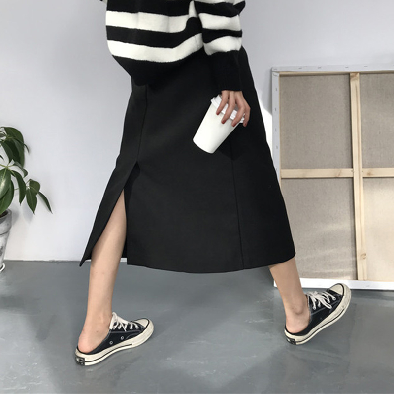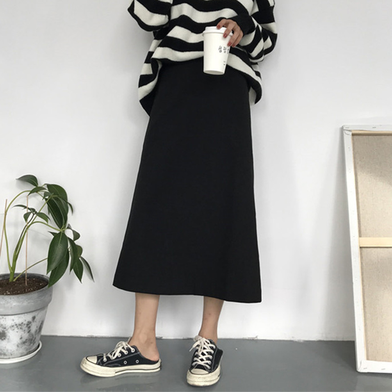 簡約黑裙子秋裝女2018新款韓版時尚高腰半身裙學生休閑中長A字裙