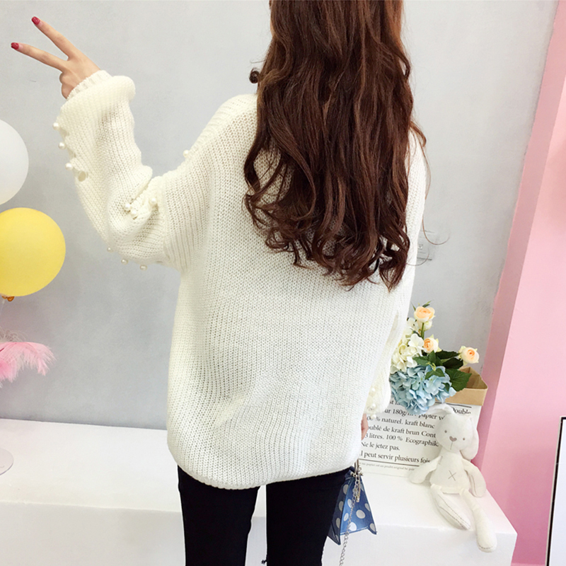 慵懶風鏤空破洞透視針織衫女秋冬裝2018新款韓版寬松釘珠毛衣外套
