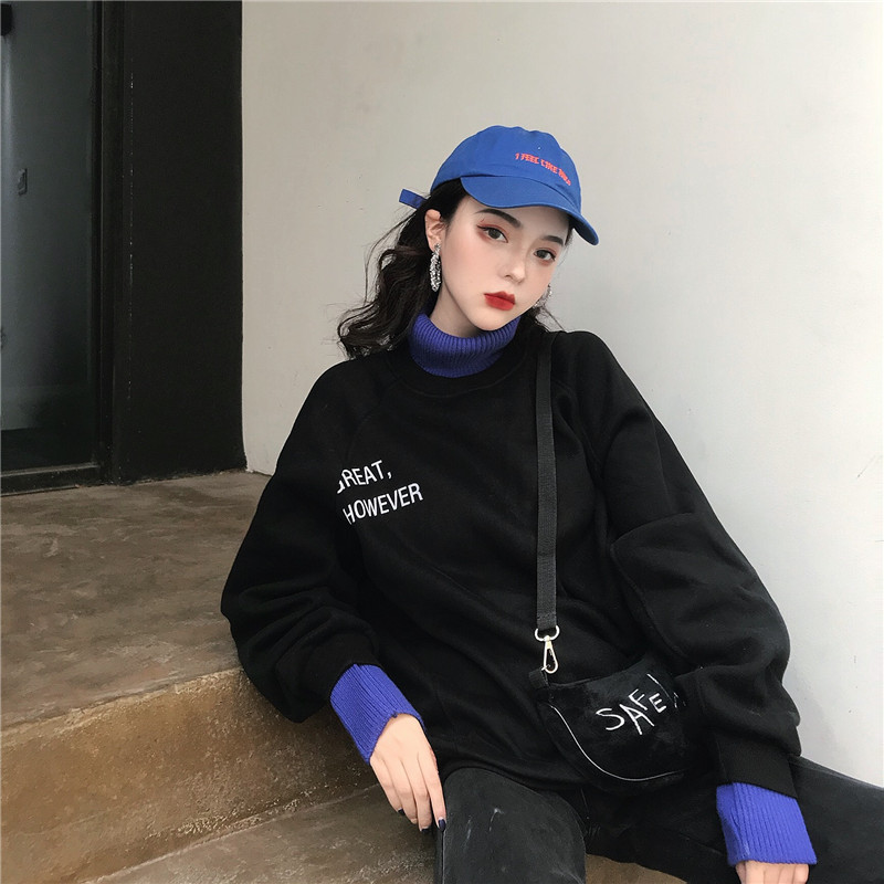 重點是 領子和袖子都用了毛線面料去拼接!前面還有個性的字母印花啊