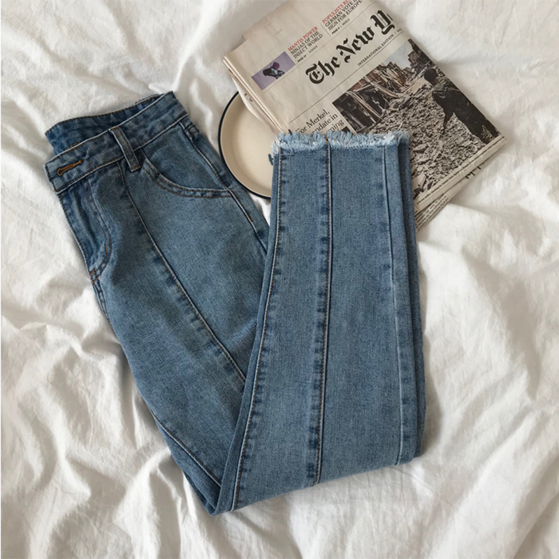 / 休閑毛邊牛仔褲女2018秋裝新款韓版修身高腰直筒褲子學生九分褲潮