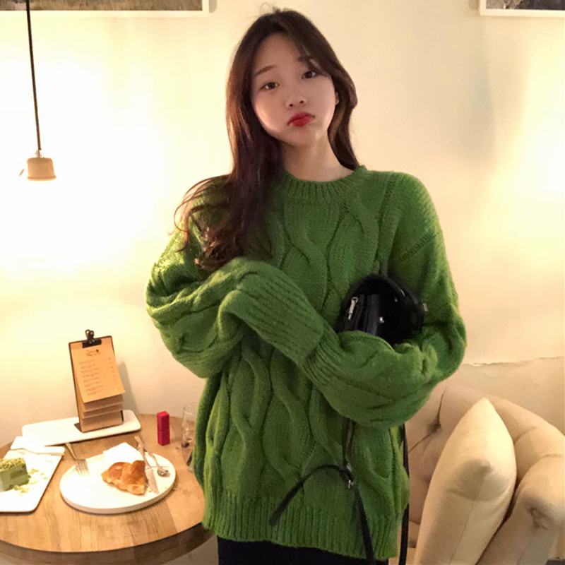 慵懶風麻花套頭針織衫女秋冬裝2018新款韓版學生寬松長袖毛衣外套