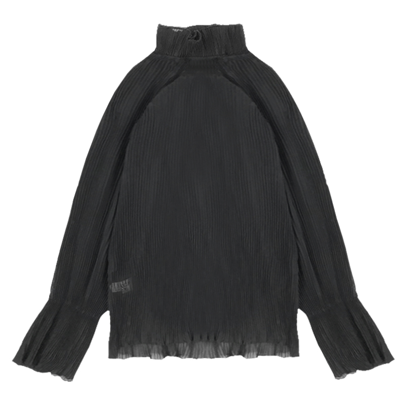 / 氣質雪紡衫女秋裝新款花邊領百褶網紗立領上衣花瓣袖內搭打底襯衫