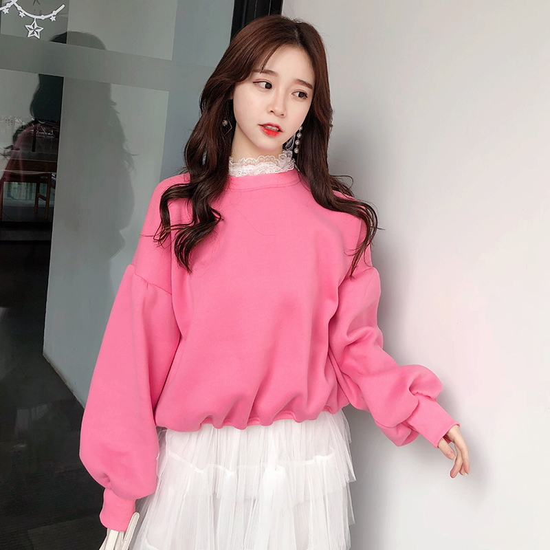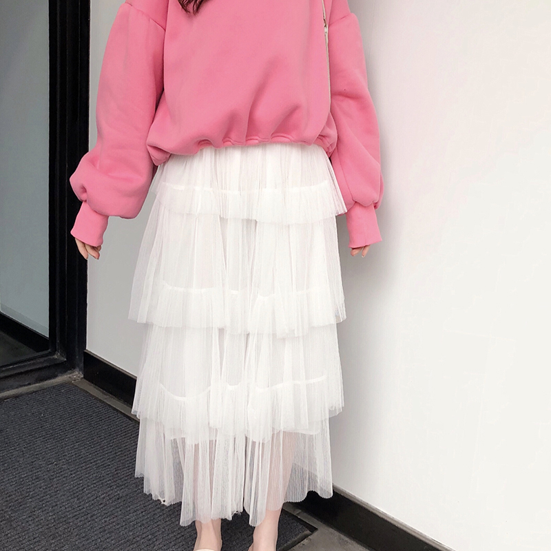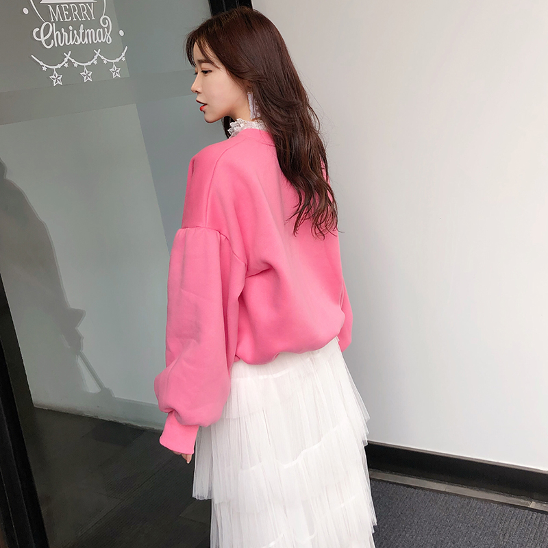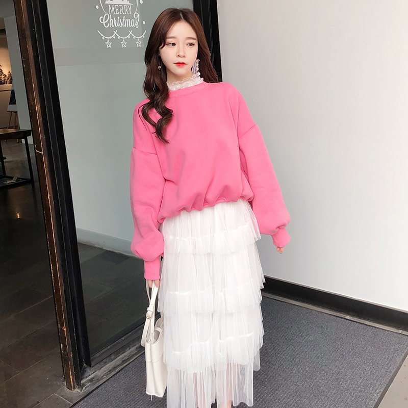 / 兩件套秋冬女裝新款寬松燈籠長袖加絨衛衣高腰網紗半身裙蛋糕裙子