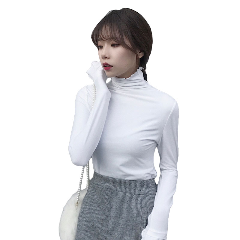 初秋上衣韓版修身顯瘦百搭長袖打底衫女T恤氣質高領親膚打底Tee潮