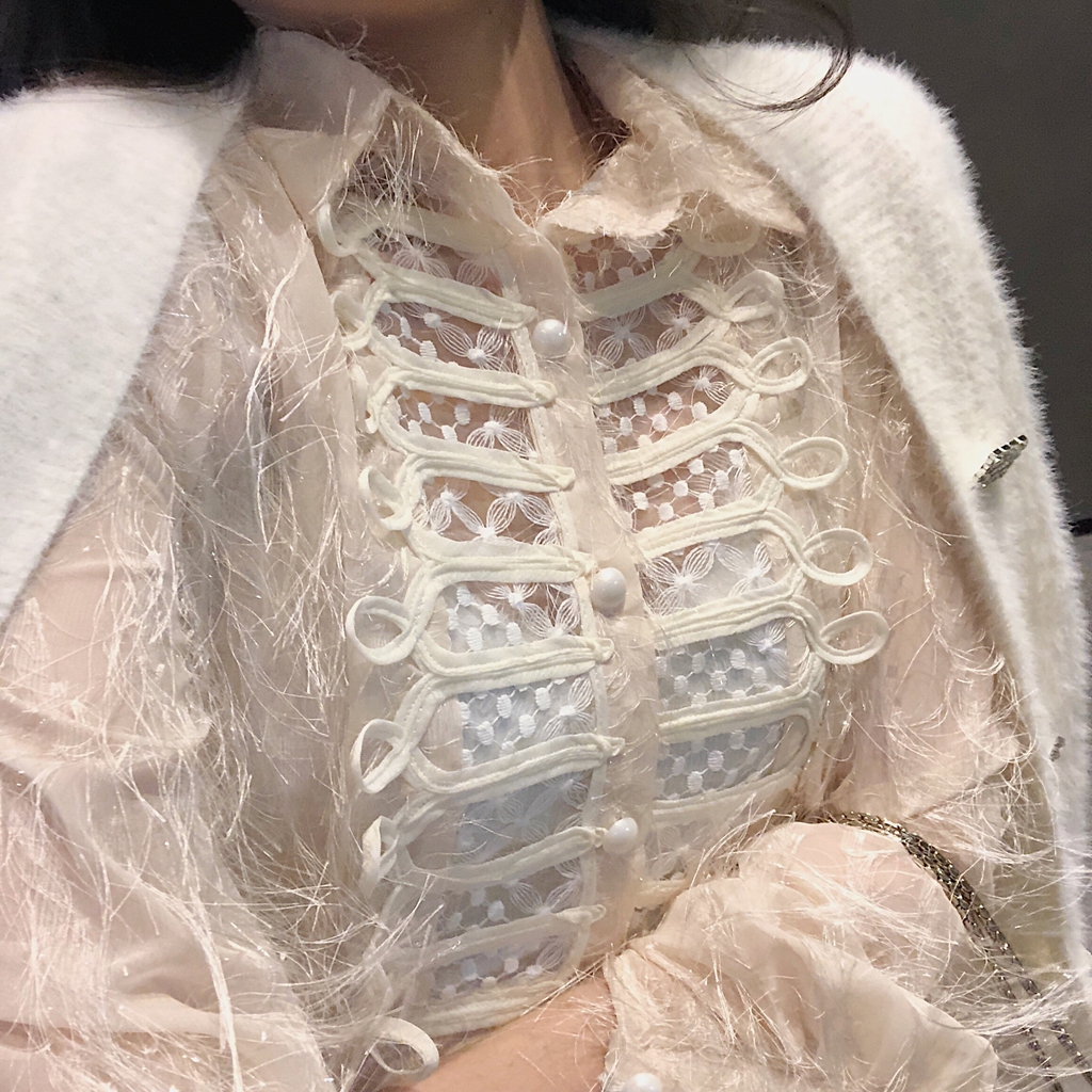 / 氣質修身襯衫韓版毛毛長袖百搭襯衣+網紅同款毛衣女外套開衫套裝