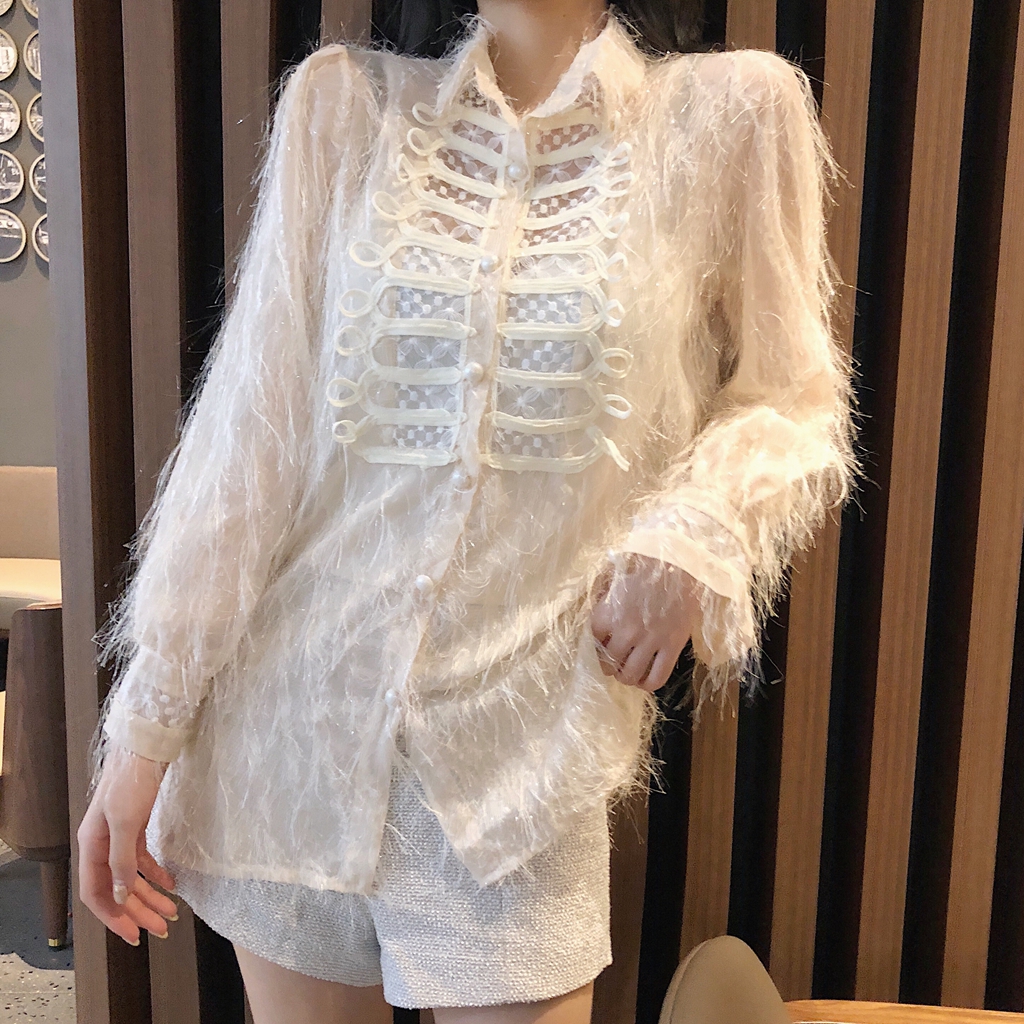 氣質修身襯衫韓版毛毛長袖百搭襯衣+網紅同款毛衣女外套開衫套裝
