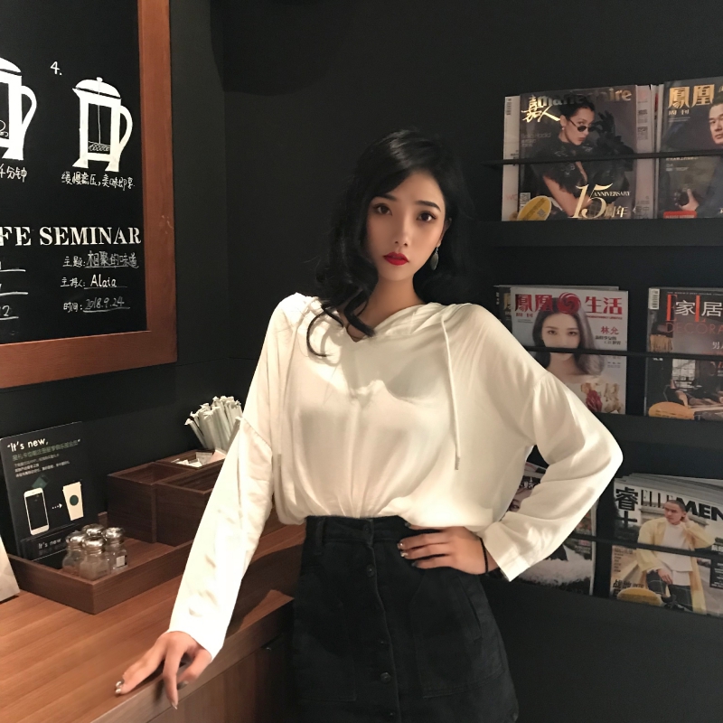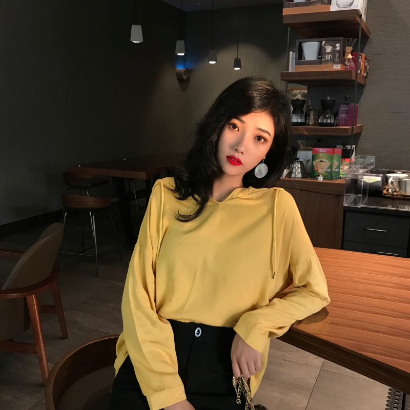 / 2018秋季韓版新款寬松顯瘦連帽抽繩慵懶港味套頭衛衣襯衫女上衣潮
